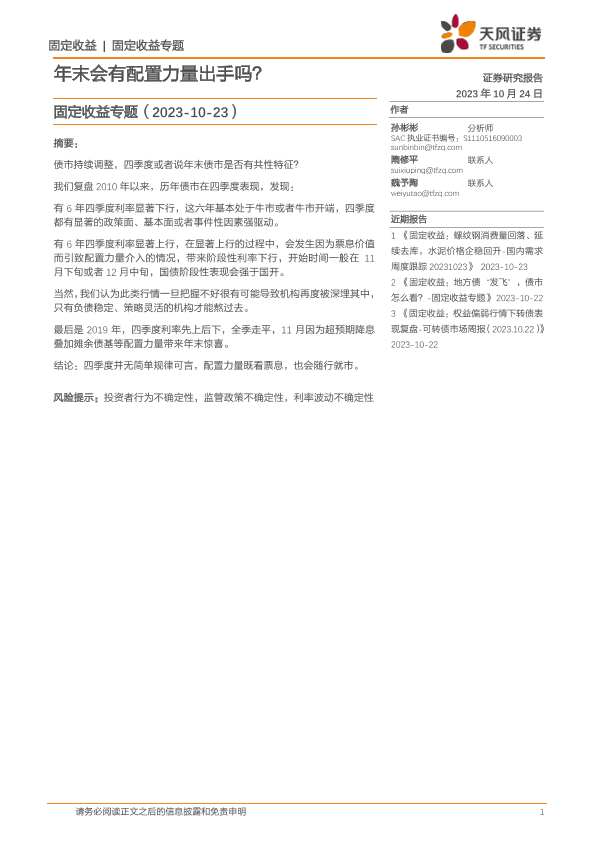 【天风证券】【20231024】年末会有配置力量出手吗?-21页