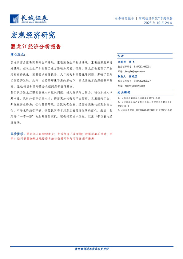 【长城证券】【20231024】宏观经济研究:黑龙江经济分析报告-27页