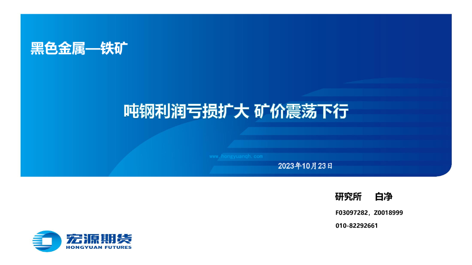 【宏源期货】【20231023】黑色金属_铁矿:吨钢利润亏损扩大,矿价震荡下行-29页