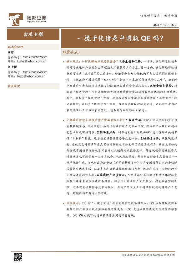 【德邦证券】【20231025】宏观专题:一揽子化债是中国版QE吗?-34页