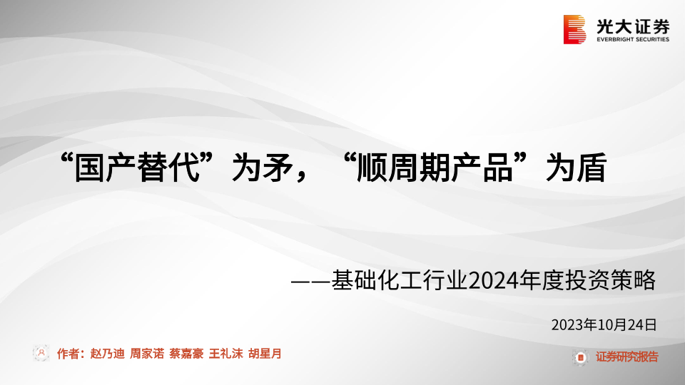 【光大证券】【20231024】基础化工行业2024年度投资策略:“国产替代”为矛,“顺周期产品”为盾-68页
