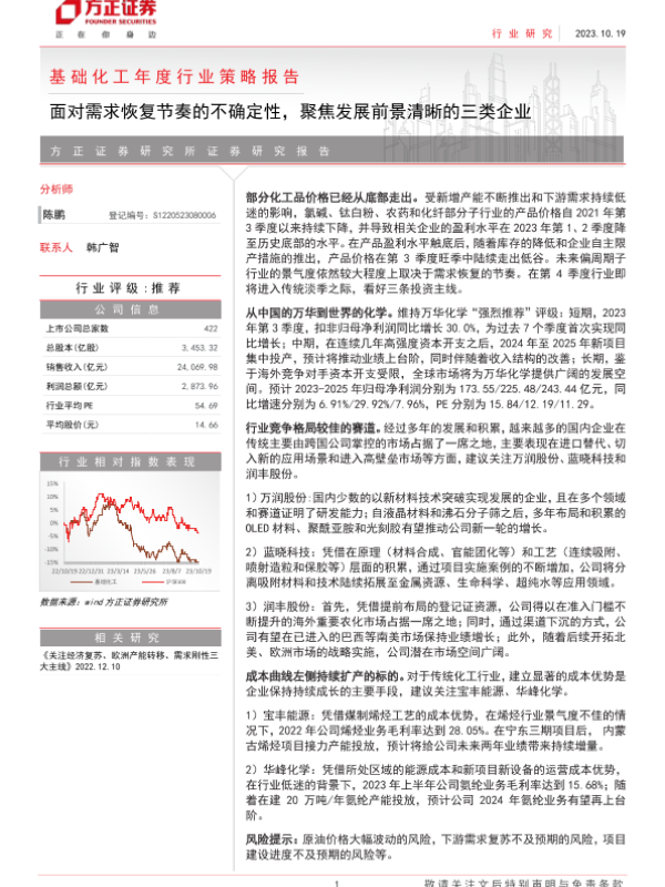 【方正证券】【20231019】基础化工行业年度行业策略报告:面对需求恢复节奏的不确定性,聚焦发展前景清晰的三类企业-28页