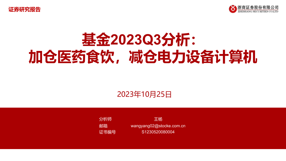 【浙商证券】【20231025】基金2023Q3分析:加仓医药食饮,减仓电力设备计算机-30页