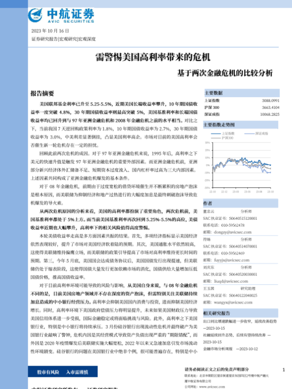 【中航证券】【20231016】基于两次金融危机的比较分析:需警惕美国高利率带来的危机-17页