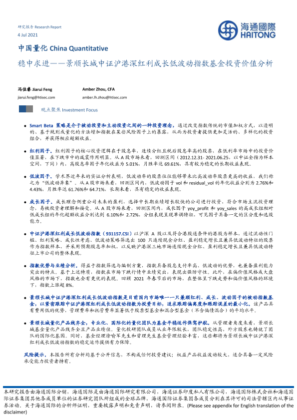 【海通国际】【20210704】稳中求进——景顺长城中证沪港深红利成长低波动指数基金投资价值分析-24页