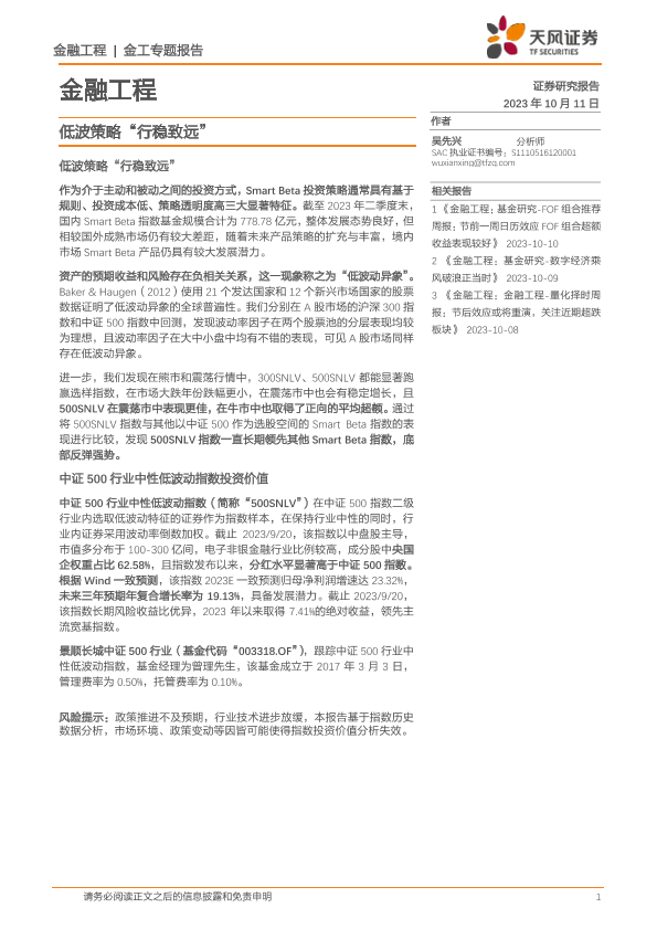 【天风证券】【20231011】金融工程:低波策略“行稳致远”-17页