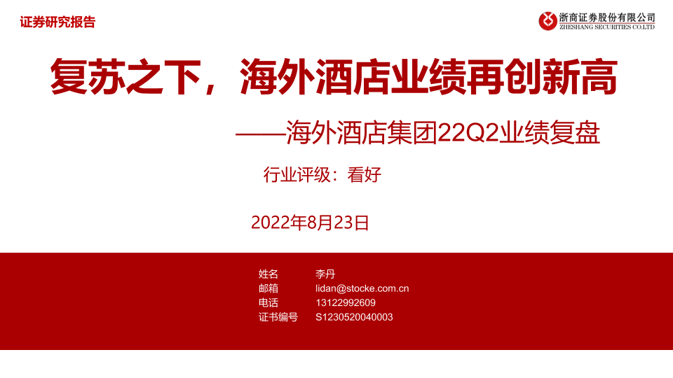 【浙商证券】【20220823】酒店行业:海外酒店集团22Q2业绩复盘,复苏之下,海外酒店业绩再创新高-35页