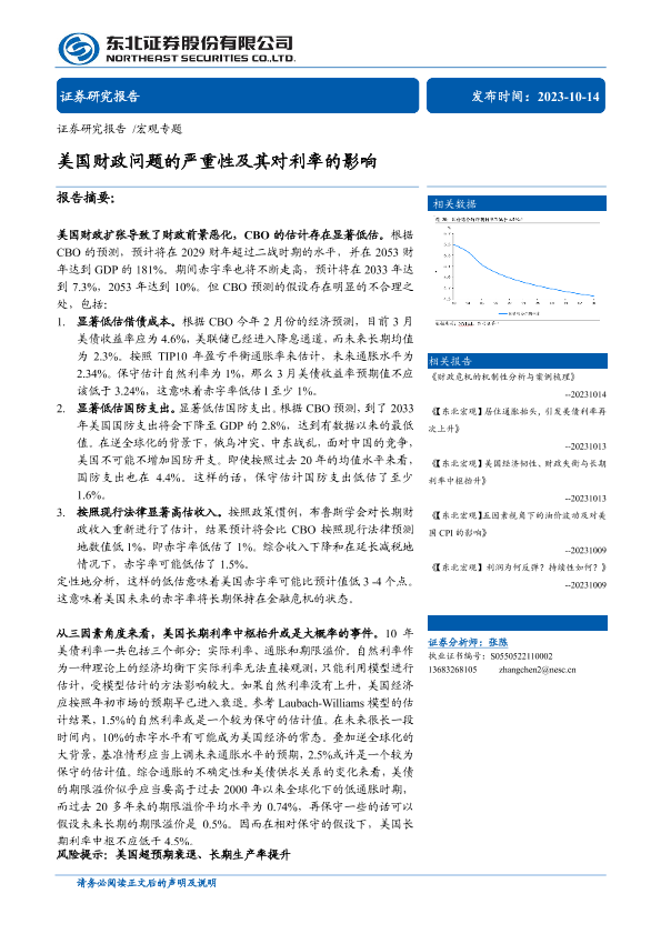 【东北证券】【20231014】美国财政问题的严重性及其对利率的影响-19页