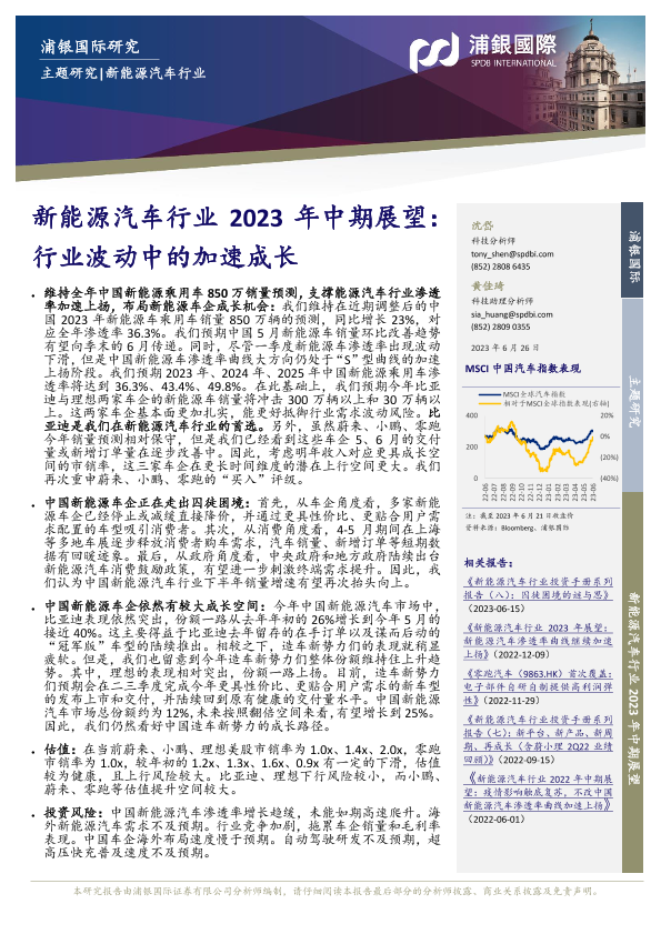 【浦银国际】【20230626】新能源汽车行业 2023 年中期展望:行业波动中的加速成长-34页