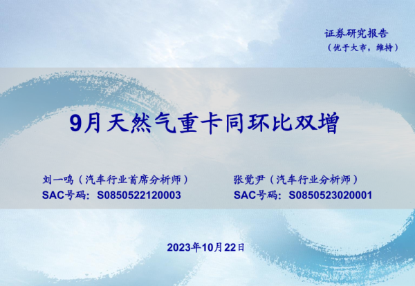 【海通证券】【20231022】汽车行业:9月天然气重卡同环比双增-21页