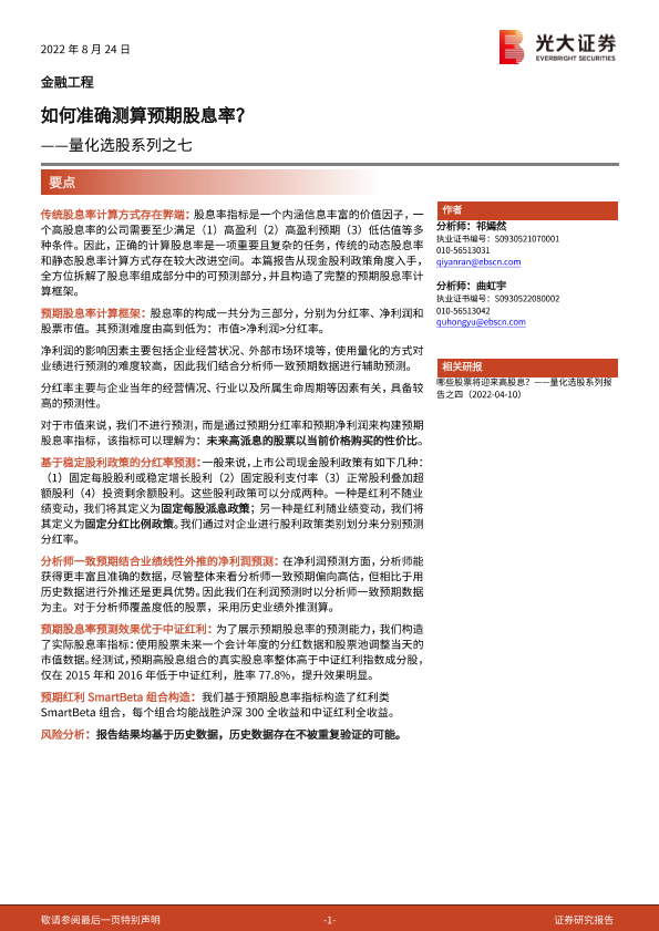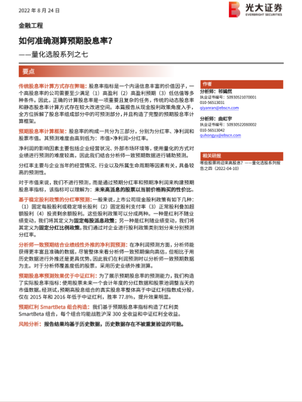 【光大证券】【20220824】量化选股系列报告之七:如何准确测算预期股息率?-24页