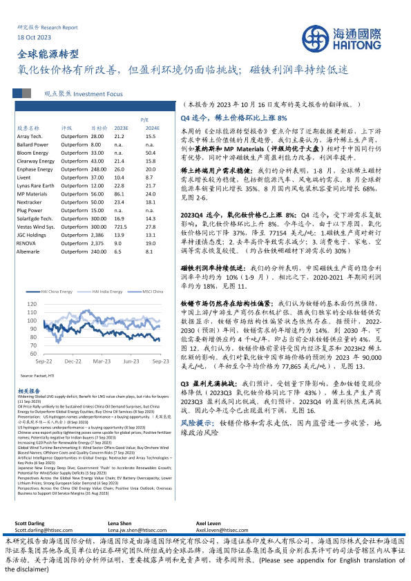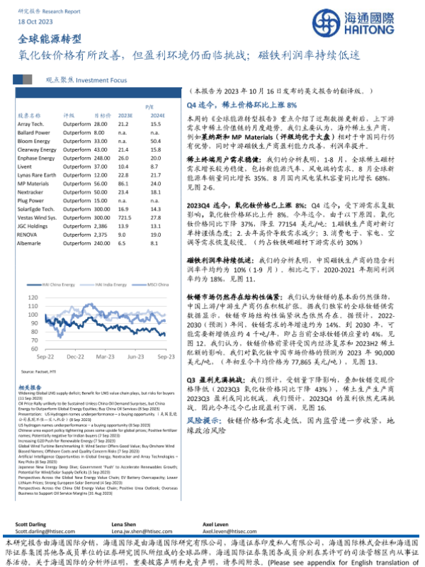 【海通国际】【20231018】全球能源行业转型:氧化钕价格有所改善,但盈利环境仍面临挑战,磁铁利润率持续低迷-15页