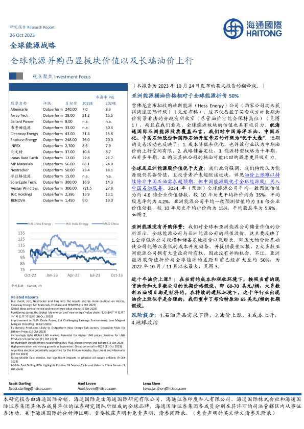 【海通国际】【20231026】全球能源行业战略:全球能源并购凸显板块价值以及长端油价上行-45页