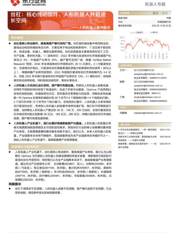 【东方证券】【20231025】人形机器人行业系列报告:丝杠,核心传动部件,人形机器人开启成长空间-35页