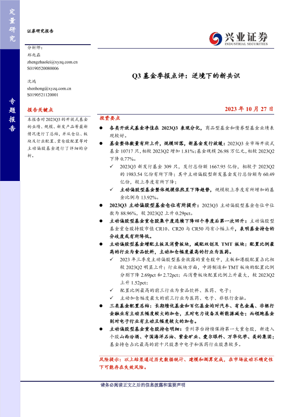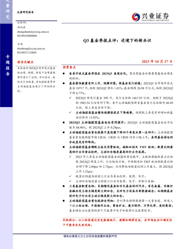 【兴业证券】【20231027】Q3基金季报点评:逆境下的新共识-24页