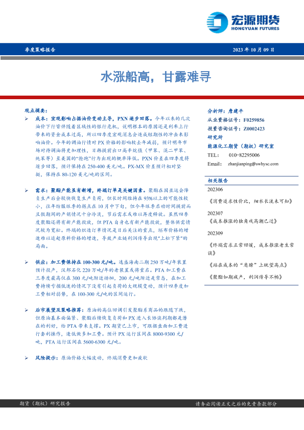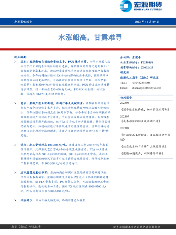 【宏源期货】【20231009】PTA季度策略报告:水涨船高,甘露难寻-19页
