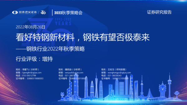 【国泰君安证券】【20220826】钢铁行业2022年秋季策略:看好特钢新材料,钢铁有望否极泰来-37页