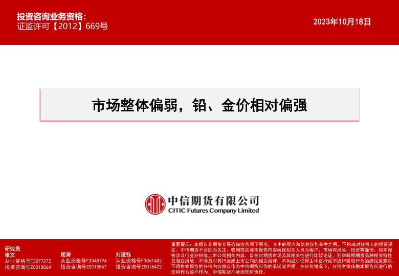 【中信期货】【20231018】市场整体偏弱,铅、金价相对偏强(更正)-15页