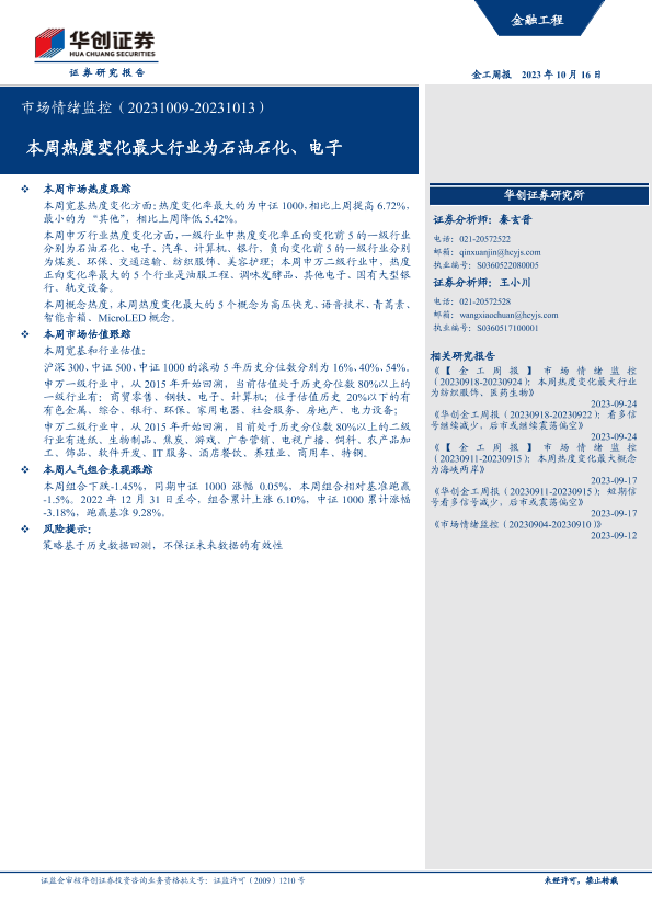 【华创证券】【20231016】市场情绪监控:本周热度变化最大行业为石油石化、电子-18页