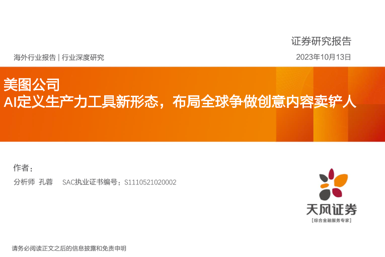 【天风证券】【20231013】美图公司-AI定义生产力工具新形态-布局全球争做创意内容卖铲人-20页