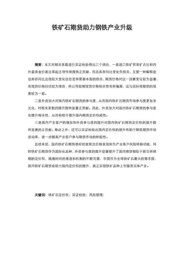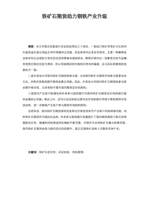 定价权 金融市场 钢铁产业 铁矿石期货 风险管理