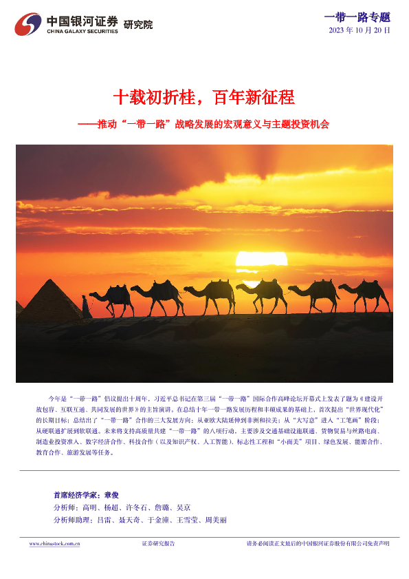 【银河证券】【20231020】推动“一带一路”战略发展的宏观意义与主题投资机会:十载初折桂,百年新征程-71页