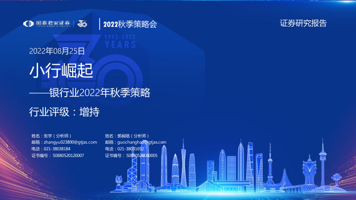 【国泰君安证券】【20220825】银行业2022年秋季策略:小行崛起-19页