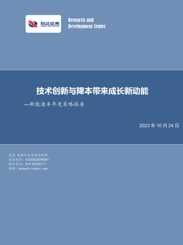 【信达证券】【20231024】新能源车行业年度策略报告:技术创新与降本带来成长新动能-33页