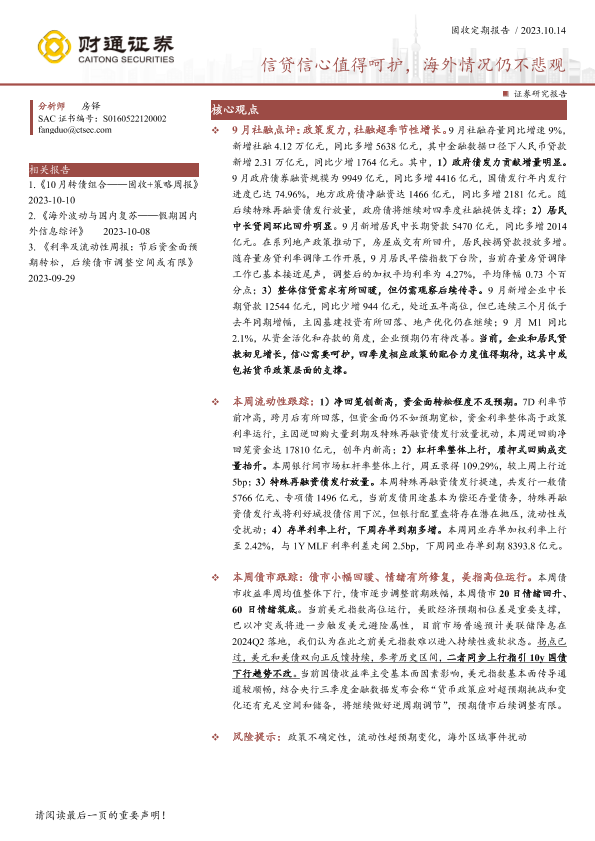 【财通证券】【20231014】信贷信心值得呵护,海外情况仍不悲观-19页