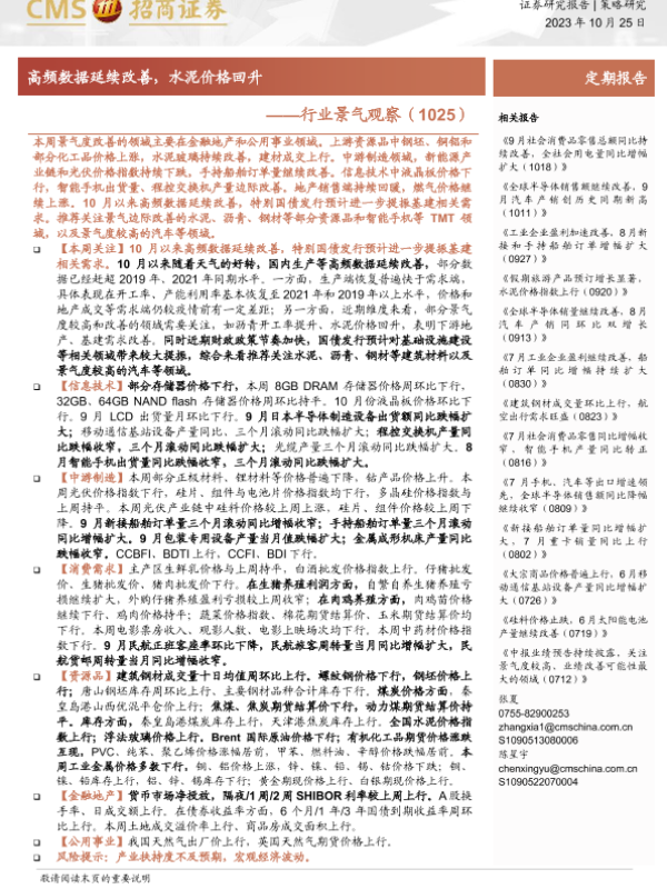 【海通证券】【20231025】行业景气观察:高频数据延续改善,水泥价格回升-30页
