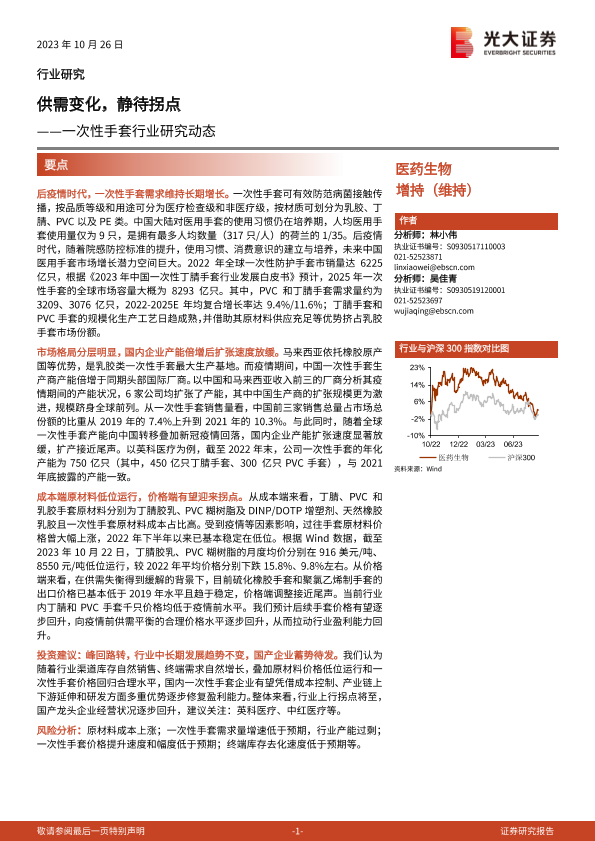 【光大证券】【20231026】一次性手套行业研究动态:供需变化,静待拐点-27页