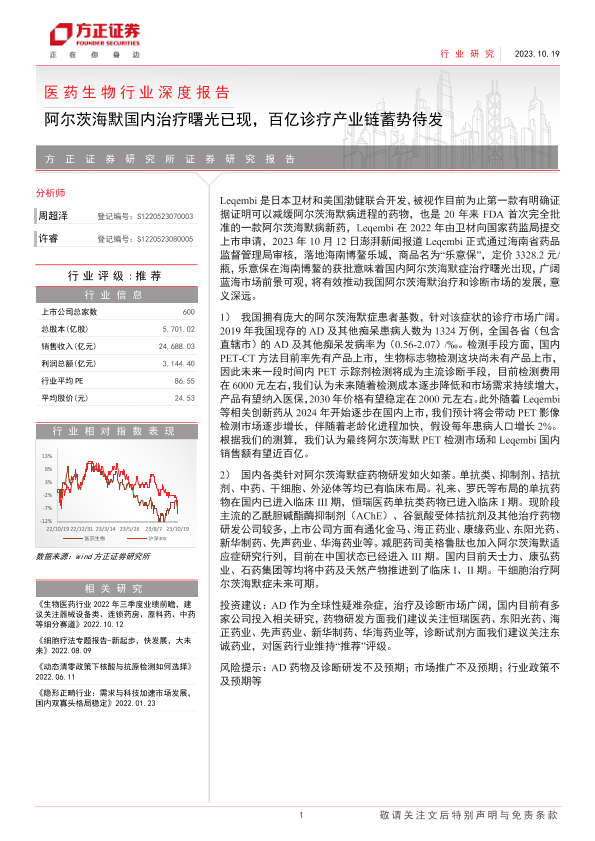 【方正证券】【20231019】医药生物行业深度报告:阿尔茨海默国内治疗曙光已现,百亿诊疗产业链蓄势待发-15页