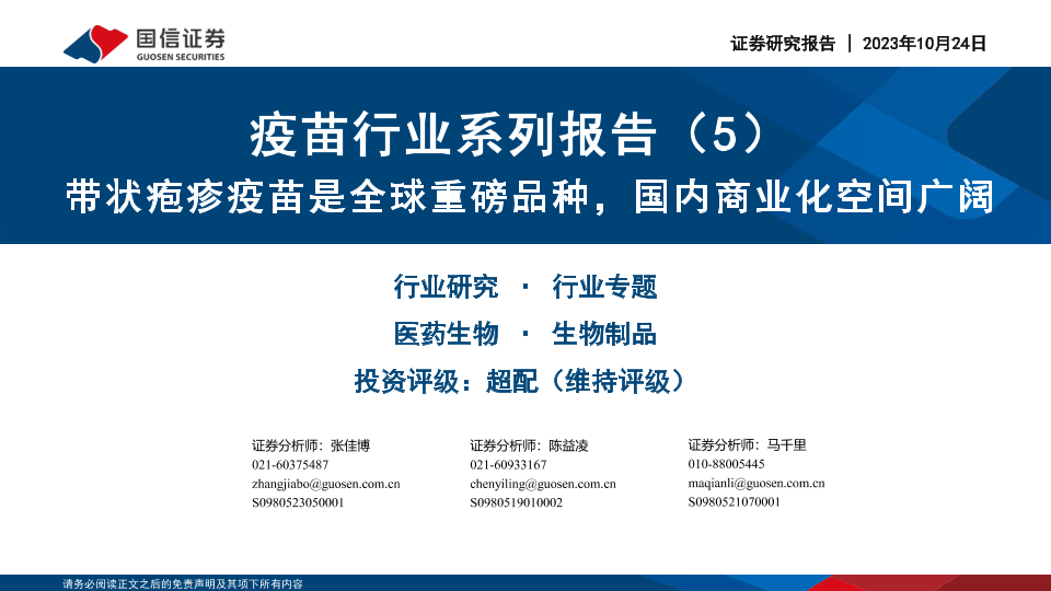 【国信证券】【20231024】疫苗行业系列报告(5):带状疱疹疫苗是全球重磅品种,国内商业化空间广阔-31页