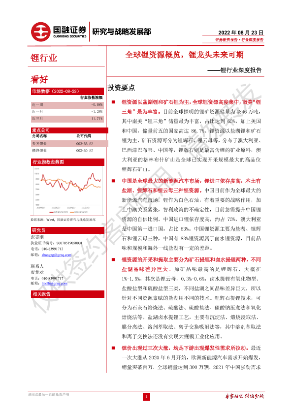 【国融证券】【20220823】锂行业深度报告:全球锂资源概览,锂龙头未来可期-27页