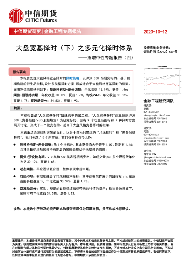 【中信期货】【20231012】指增中性专题报告(四):大盘宽基择时(下)之多元化择时体系-15页