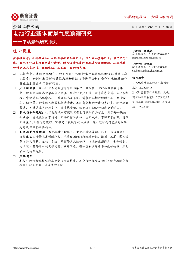 【浙商证券】【20231016】中观景气研究系列:电池行业基本面景气度预测研究-18页