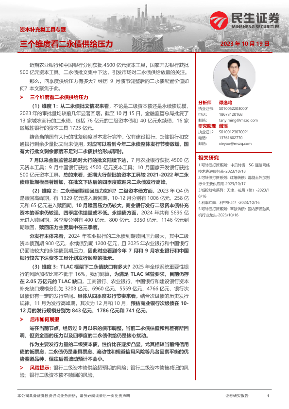 【民生证券】【20231019】资本补充类工具专题:三个维度看二永债供给压力-16页