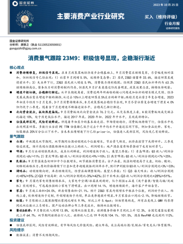 【国金证券】【20231025】主要消费产业行业月报:消费景气跟踪23M9,积极信号显现,企稳渐行渐近-27页