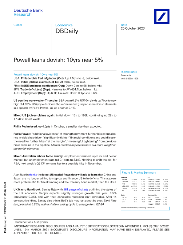 【Deutsche Bank】【20231020】Powell leans dovish; 10yrs near 5%-12页