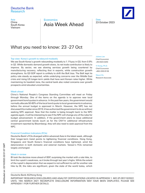 【Deutsche Bank】【20231022】Deutsche Bank-Asia Week Ahead What you need to know 23 -27 Oct-10页