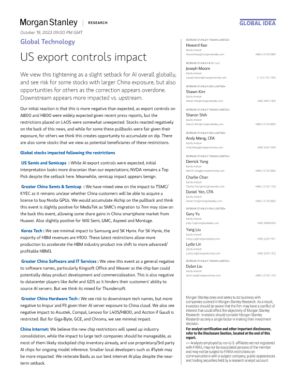 【Morgan Stanley】【2023】全球科技 - 美国出口管制的影响-22页