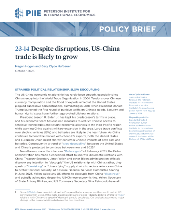 【彼得森经济研究所】【202310】尽管中断,美中贸易仍有可能增长-18页