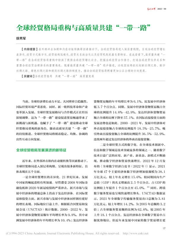 【中国社会科学院】【202309】全球经贸格局重构与高质量共建‘一带一路’-6页