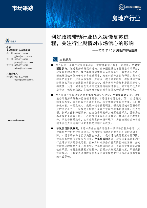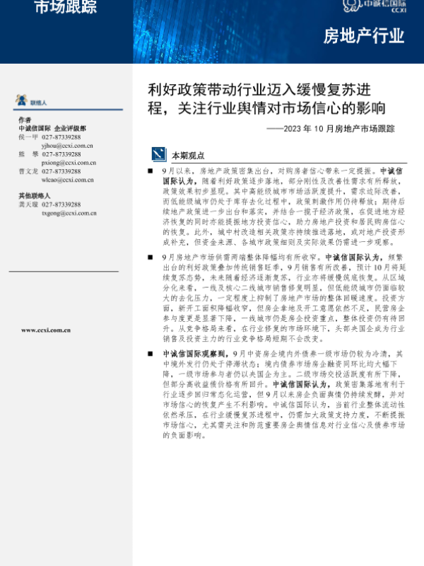 【中诚信国际】【202310】利好政策带动行业迈入缓慢复苏进程,关注行业舆情对市场信心的影响-9页