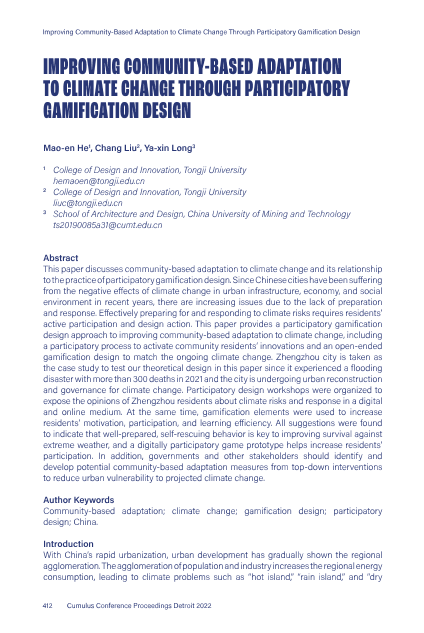 中国城市 参与式设计 气候变化 游戏化设计 社区适应