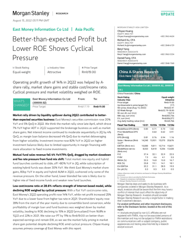 【Morgan Stanley】【20220815】East Money Information Co Ltd Better-than-expected Profit but Lower ROE Shows Cyclical Pressure-17页