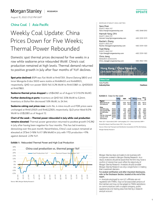 【Morgan Stanley】【20220815】Weekly Coal Update China Prices Down for Five Weeks; Thermal Power Rebounded-13页
