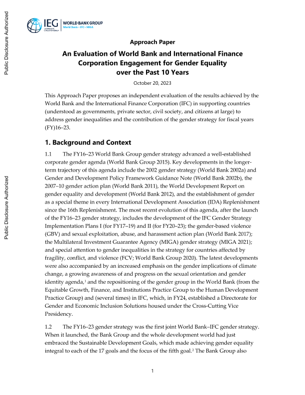 【世界银行】【20231020】An Evaluation of World Bank and International Finance Corporation Engagement for Gender Equality over the Past 10 Years-43页