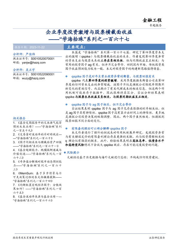 【华安证券】【20231122】企业季度投资激增与股票横截面收益-22页