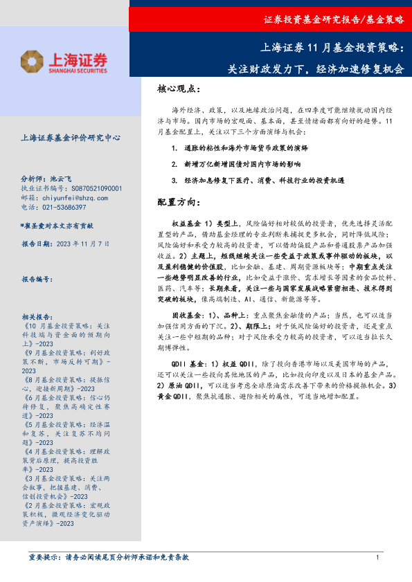 【上海证券】【20231107】11月基金投资策略:关注财政发力下,经济加速修复机会-11页